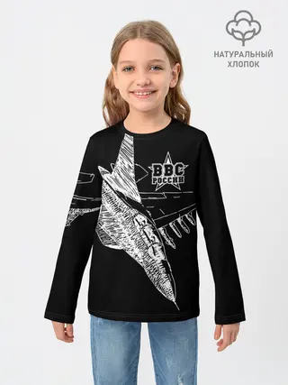 Лонгслив женский. Хлопок / Истребитель штрихом ВВС России