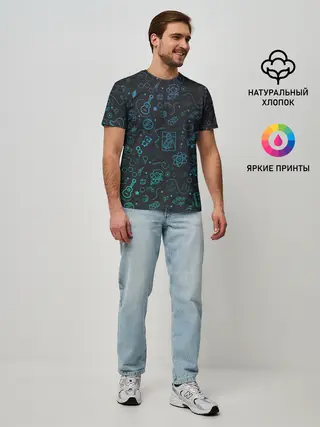 Мужской лонгслив базовый / Цветные треугольники_голубой
