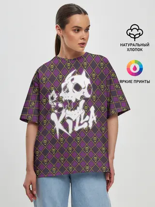 Женская футболка оверсайз / KILLER QUEEN белая на узоре
