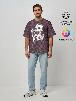Мужская футболка оверсайз / KILLER QUEEN белая на узоре