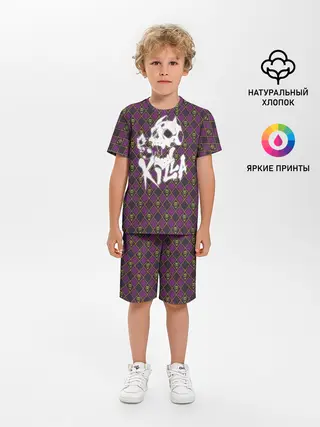 Детская пижама с шортами / KILLER QUEEN белая на узоре
