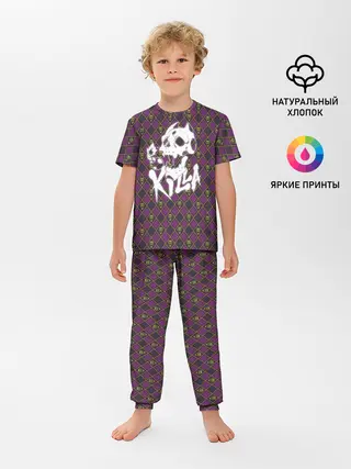 Детская пижама с брюками / KILLER QUEEN белая на узоре