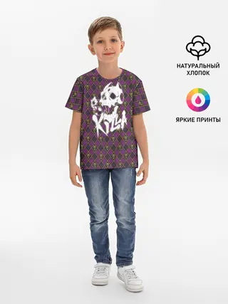 Детская базовая футболка / KILLER QUEEN белая на узоре
