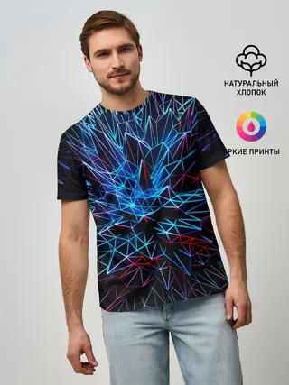 Мужской лонгслив базовый / Цветные треугольники_голубой