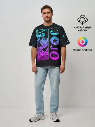 Мужская футболка оверсайз / Star Platina на черном брызги