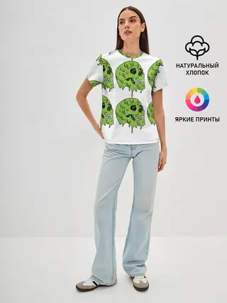 Женская футболка оверсайз / Кислотный Череп!)