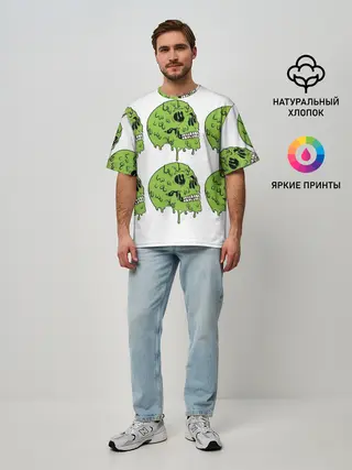Мужская футболка оверсайз / Кислотный Череп!)