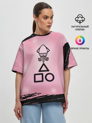 Женская футболка оверсайз / МИЛЫЙ КАЛЬМАР | ТРЕУГОЛЬНИК КВАДРАТ КРУГ