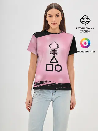 Женская базовая футболка / МИЛЫЙ КАЛЬМАР | ТРЕУГОЛЬНИК КВАДРАТ КРУГ