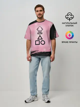 Мужская футболка оверсайз / МИЛЫЙ КАЛЬМАР | ТРЕУГОЛЬНИК КВАДРАТ КРУГ