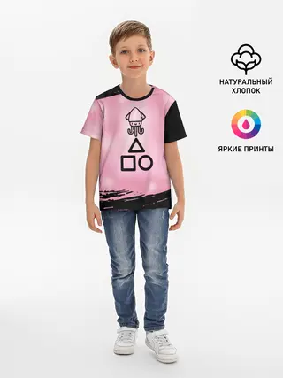 Детская базовая футболка / МИЛЫЙ КАЛЬМАР | ТРЕУГОЛЬНИК КВАДРАТ КРУГ