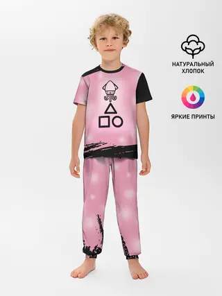 Детская пижама с шортами / МИЛЫЙ КАЛЬМАР | ТРЕУГОЛЬНИК КВАДРАТ КРУГ
