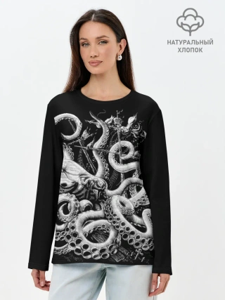 Лонгслив женский. Хлопок / Кракен Монстр