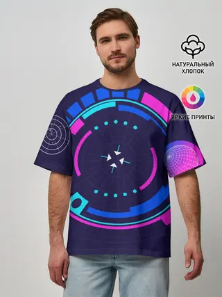 Мужская футболка оверсайз / Розовый Синий Киберпанк