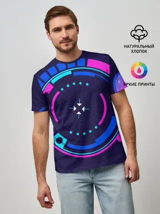 Мужская базовая футболка / Розовый Синий Киберпанк