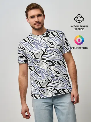 Мужская футболка оверсайз / Абстрактный сиренево-черный