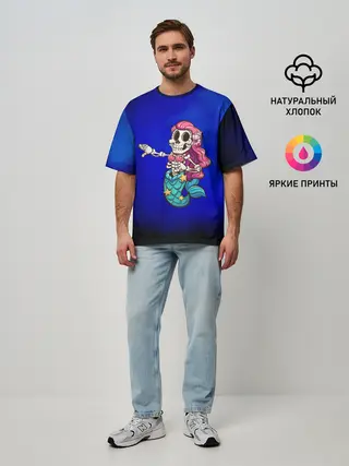 Мужская футболка оверсайз / Русалка скелет | Mermaid skeleton