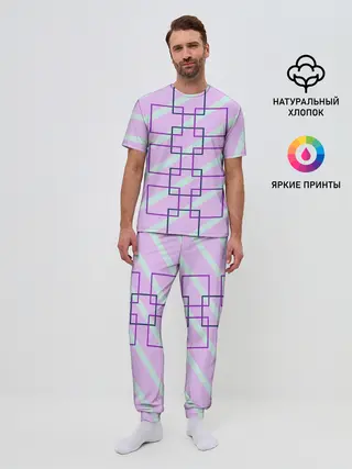 Мужская пижама с брюками / графический: клетка полоска
