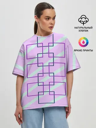 Женская футболка оверсайз / графический: клетка полоска