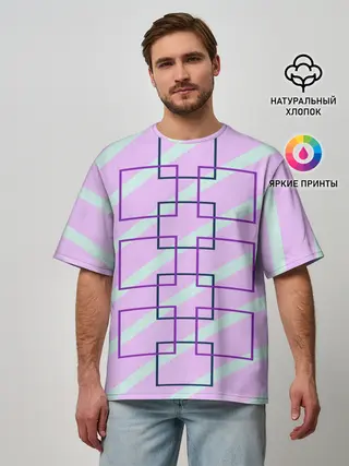 Мужская футболка оверсайз / графический: клетка полоска