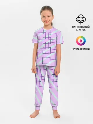 Детская пижама с брюками / графический: клетка полоска