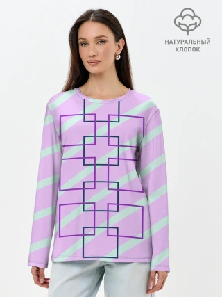 Лонгслив женский. Хлопок / графический: клетка полоска