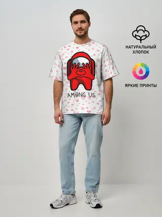 Мужская футболка оверсайз / AMONG US - СЕРДЕЧКО