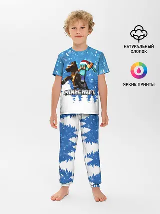 Детская пижама с брюками / Новогодний Манкрафт на коне