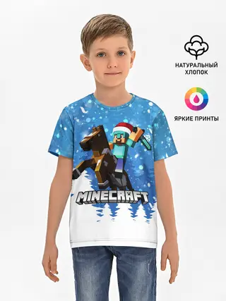 Детская базовая футболка / Новогодний Манкрафт на коне