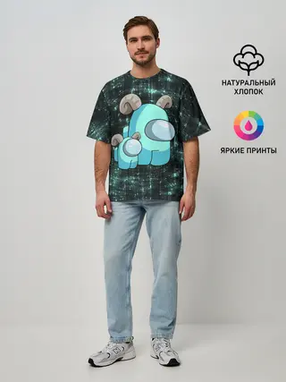 Мужская футболка оверсайз / AMONG US - С РОЖКАМИ