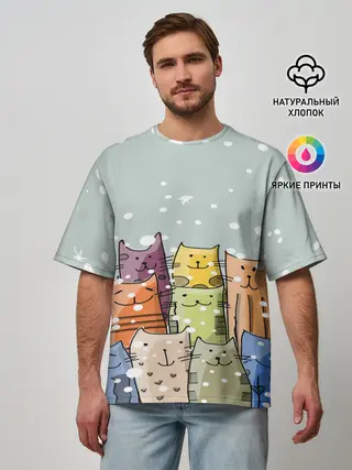 Мужская футболка оверсайз / Котики