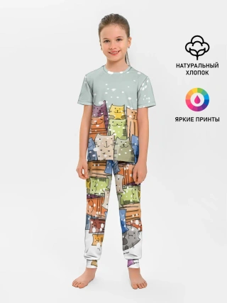 Детская пижама с брюками / Котики
