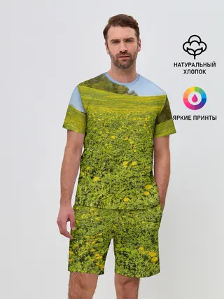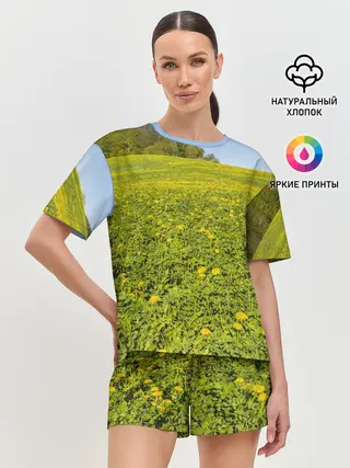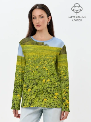 Лонгслив женский. Хлопок / Поле одуванчиков