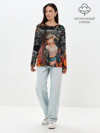 Лонгслив женский. Хлопок / Anime Girl with Graffiti