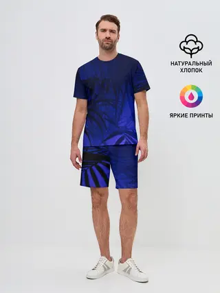 Мужской лонгслив базовый / Цветные треугольники_голубой