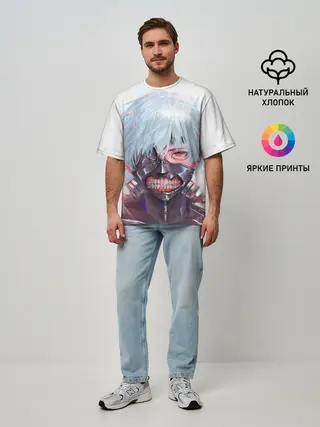 Мужской лонгслив базовый / Ken Kaneki в капюшоне