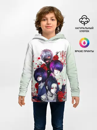 Худи мужской база хлопок / Канеки с девчонками - Токийский гуль