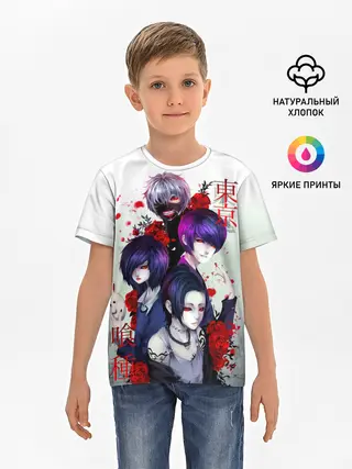 Детская базовая футболка / Канеки с девчонками - Токийский гуль