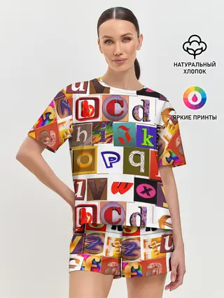 Женская пижама с шортами / Английские буквы # 2