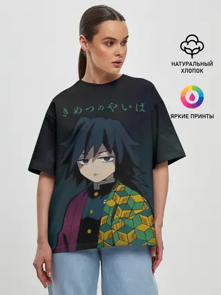 Женская футболка оверсайз / Гию Томиока Kimetsu no Yaiba