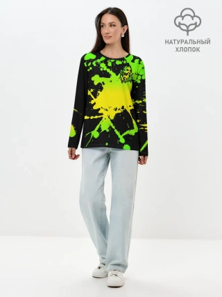 Лонгслив женский. Хлопок / KILLA зеленые брызги