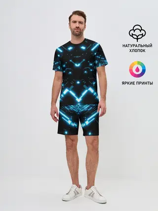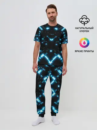 Мужской лонгслив базовый / Цветные треугольники_голубой