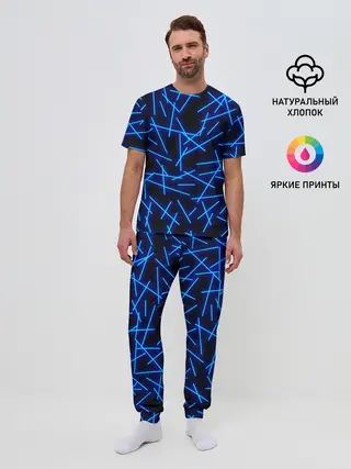 Мужской лонгслив базовый / Цветные треугольники_голубой