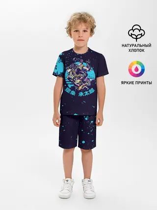 Мужская футболка оверсайз / Дзётаро синие брызги