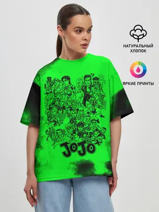 Женская футболка оверсайз / Джоджо герои зеленый дым