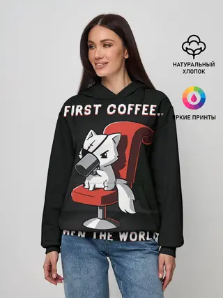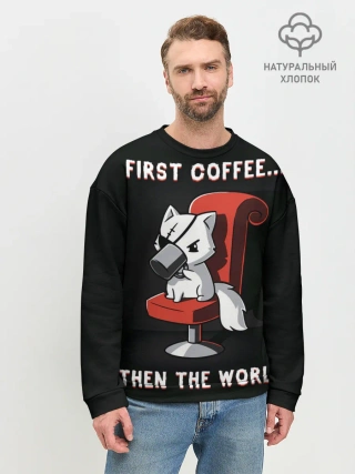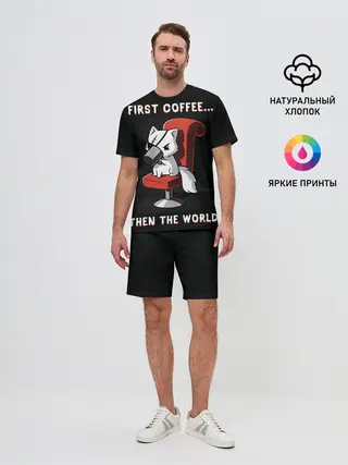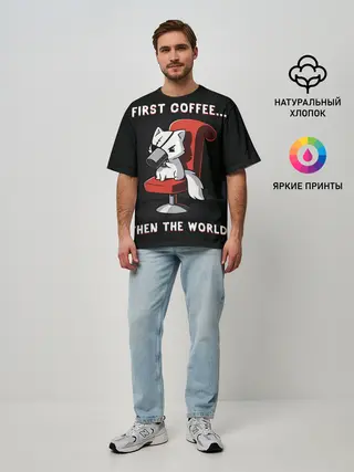 Мужская футболка оверсайз / С начала кофе, потом мир