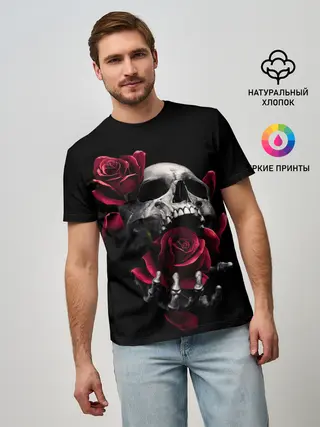 Мужская базовая футболка / ЧЕРЕП И РОЗЫ