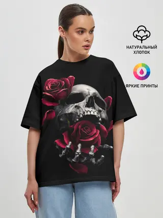 Женская футболка оверсайз / ЧЕРЕП И РОЗЫ