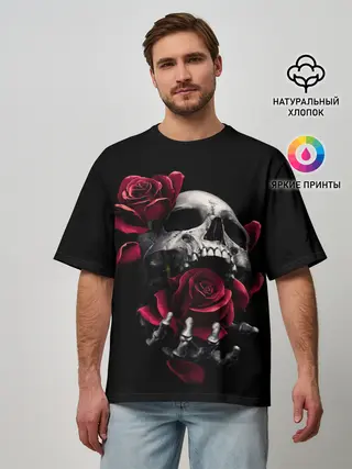 Мужская футболка оверсайз / ЧЕРЕП И РОЗЫ