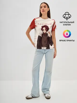 Женская футболка оверсайз / Танджиро Камадо Kimetsu no Yaiba